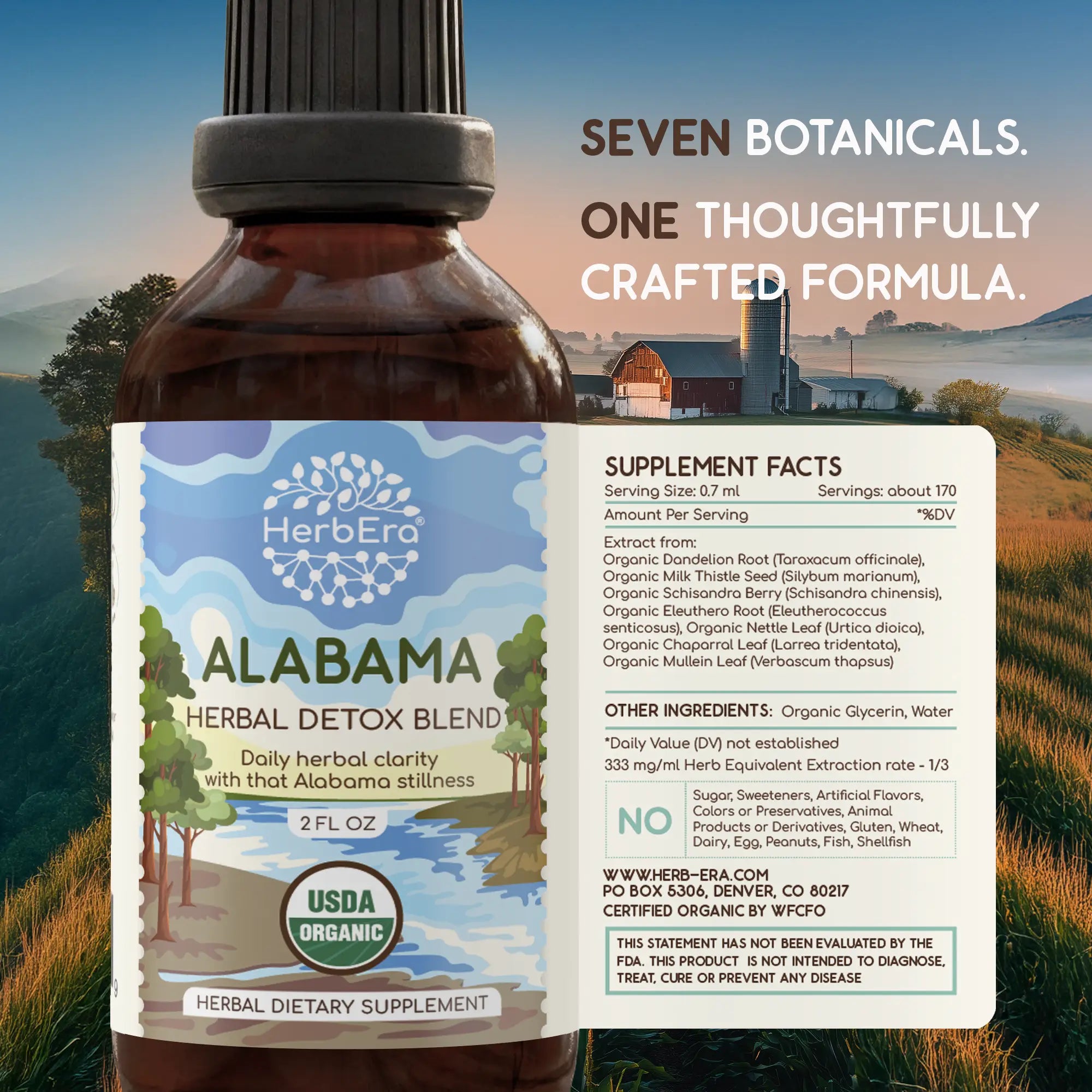 Take a deep breath of renewal. This blend connects you to the cleansing power of Alabama’s landscapes — from the deep earth of the Appalachians to the flowing might of its rivers. As a USDA Organic dietary supplement proudly made in the USA, it offers a natural path to vitality, supporting your body’s innate wisdom to detoxify and find balance, leaving you feeling as uplifted as the peak of Mount Cheaha.