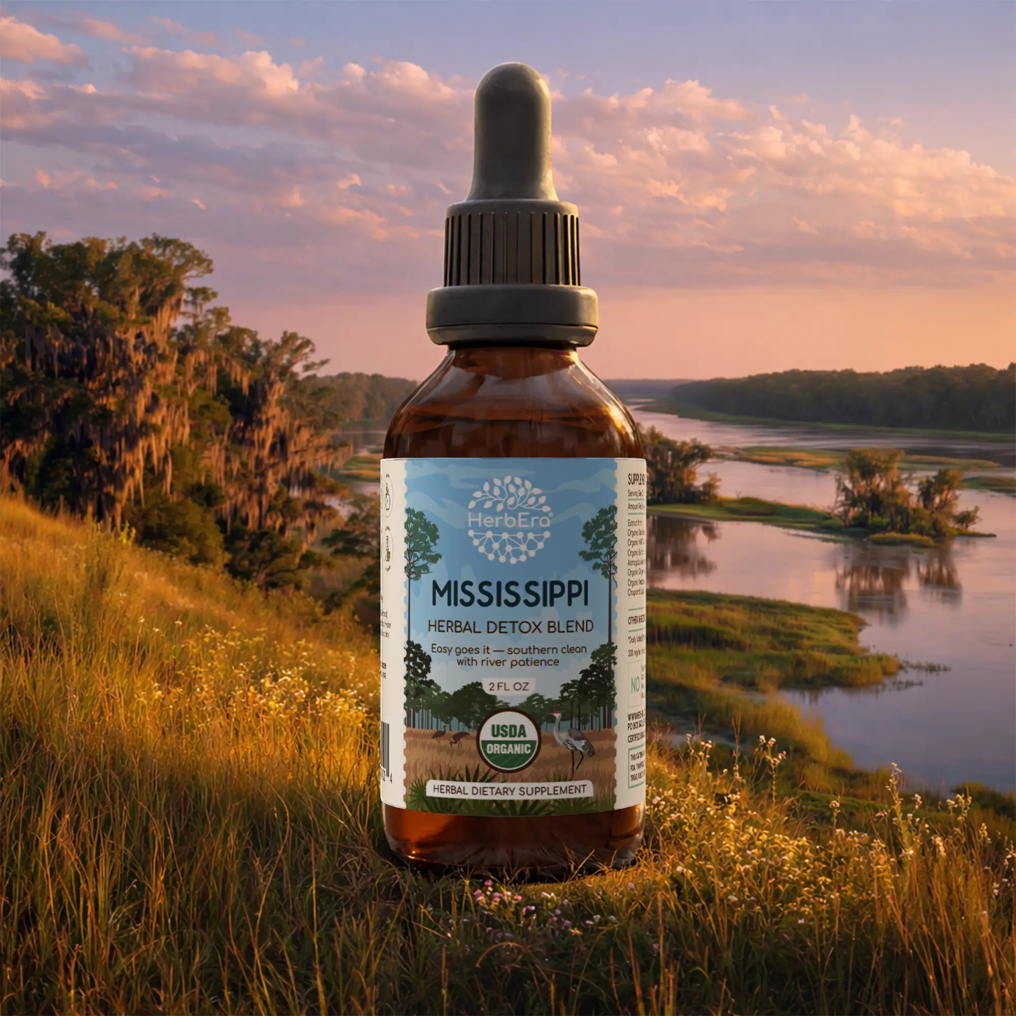 Mississippi Detox Blend Tincture draws its gentle power from the timeless flow and fertile soul of the Magnolia State. From the defining current of the great river to the deep nourishment of its delta and the serene strength of its pine forests, this USDA Organic dietary supplement, proudly made in the USA, is crafted to support your body’s elegant rhythms. It’s a harmonious formula for fostering resilience from the ground up and moving through life with steady calm.