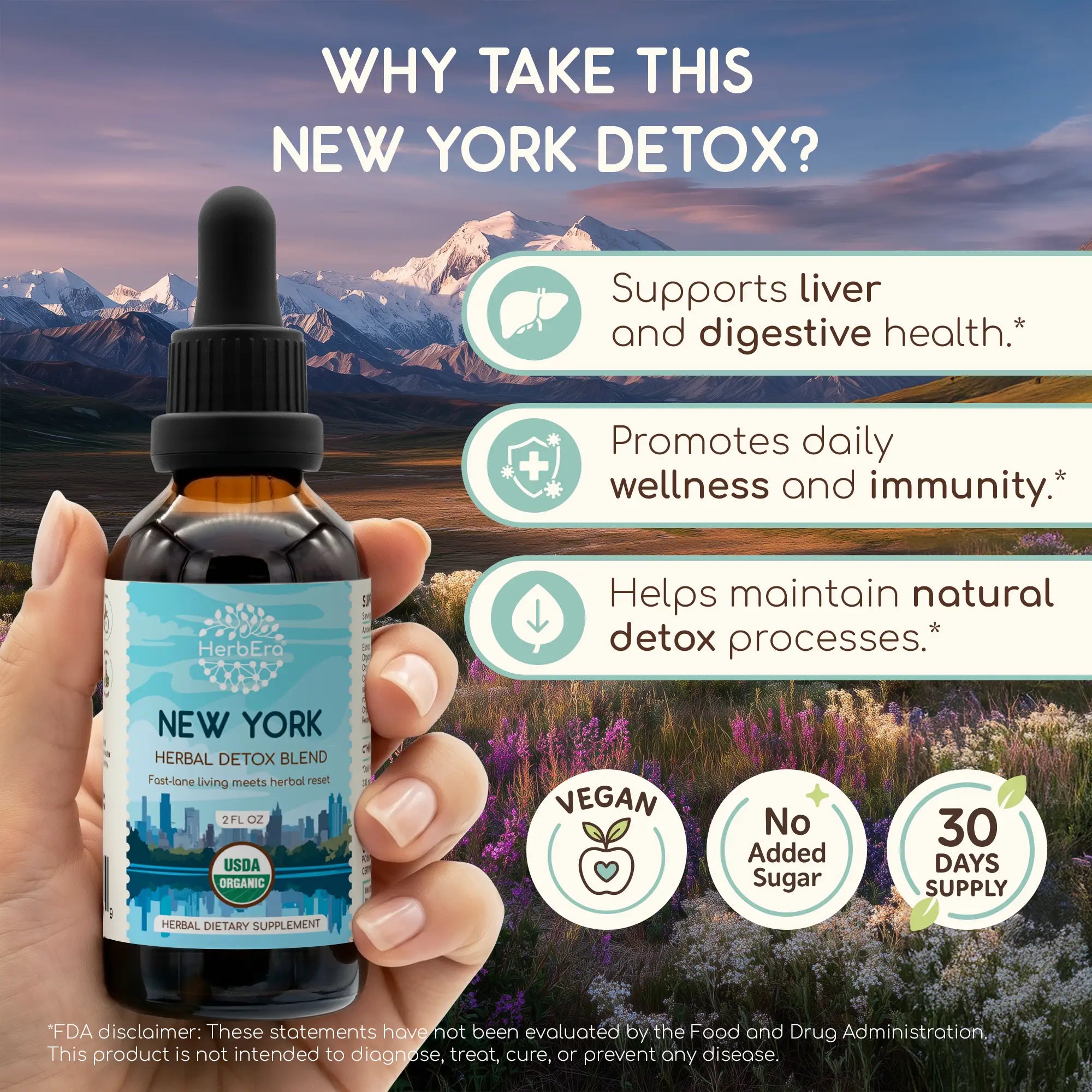 New York Detox Blend Tincture is a tribute to the monumental energy and majestic contrasts of the Empire State. This USDA Organic dietary supplement is a dynamic wellness formula crafted to support your body’s natural detoxification and renewal processes. It promotes foundational liver health, steady internal flow, and resilient vitality — helping you harness the wild strength of ancient mountains and the renewing power of legendary waters.
