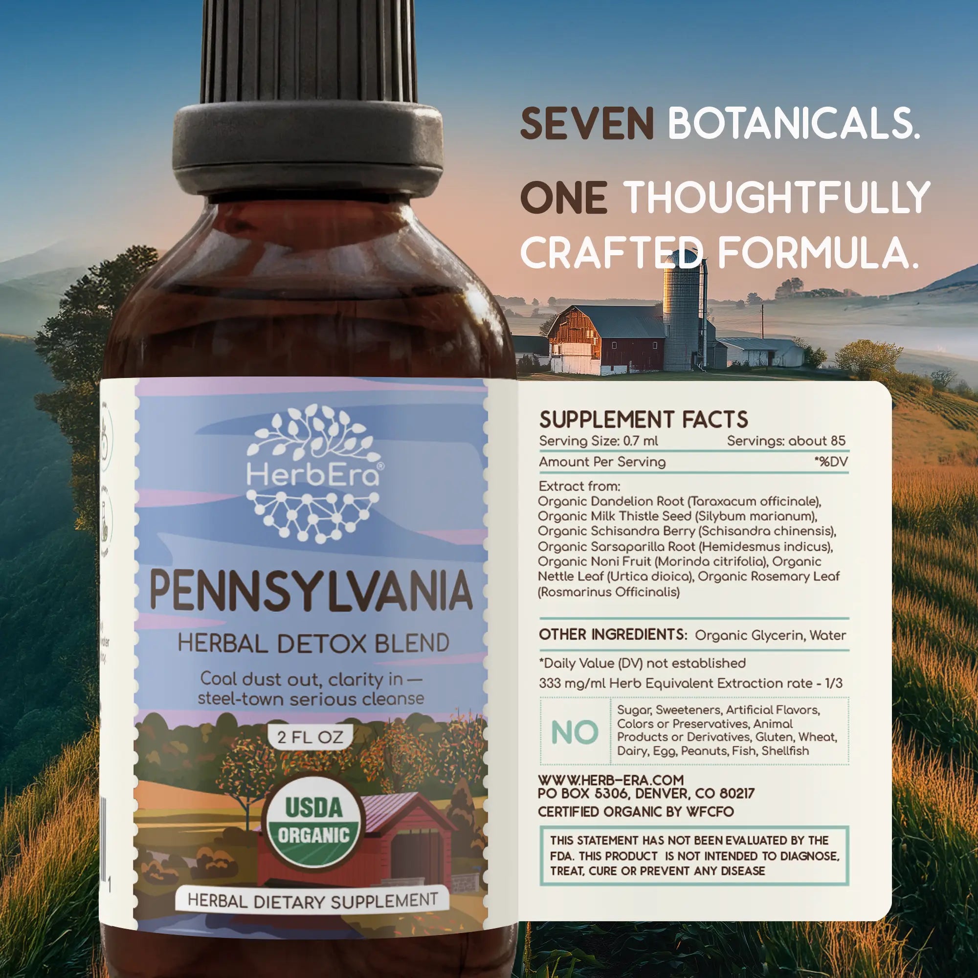 From the ancient, mist-shrouded peaks of the Appalachians to the patient, winding journey of the Susquehanna River, Pennsylvania embodies a spirit of timeless resilience and grounded renewal. Our Pennsylvania Detox Blend is a USDA Organic dietary supplement, proudly made in the USA. We crafted this balanced formula to support your body’s natural health, offering a cleanse that grounds with the steady strength of an old-growth forest.